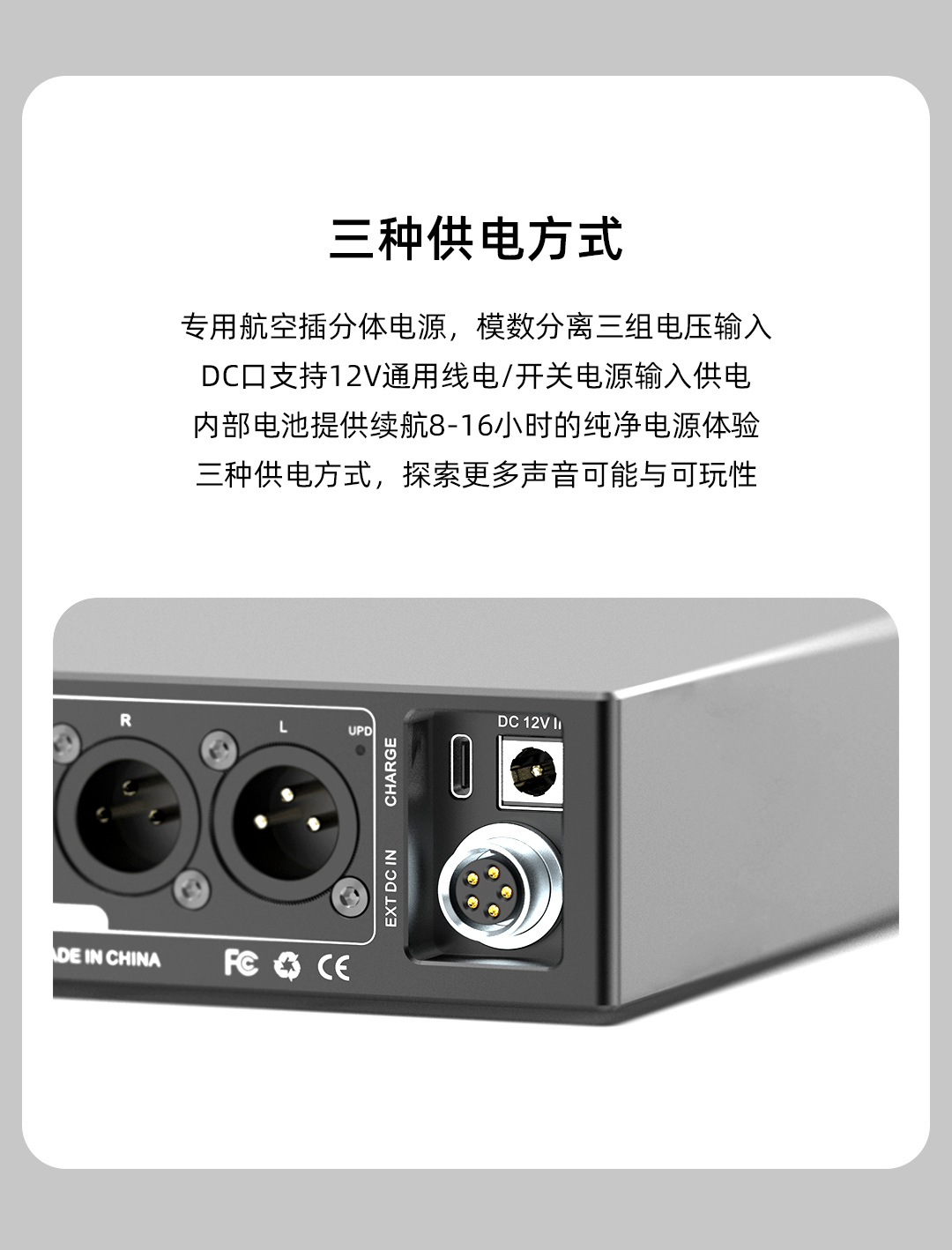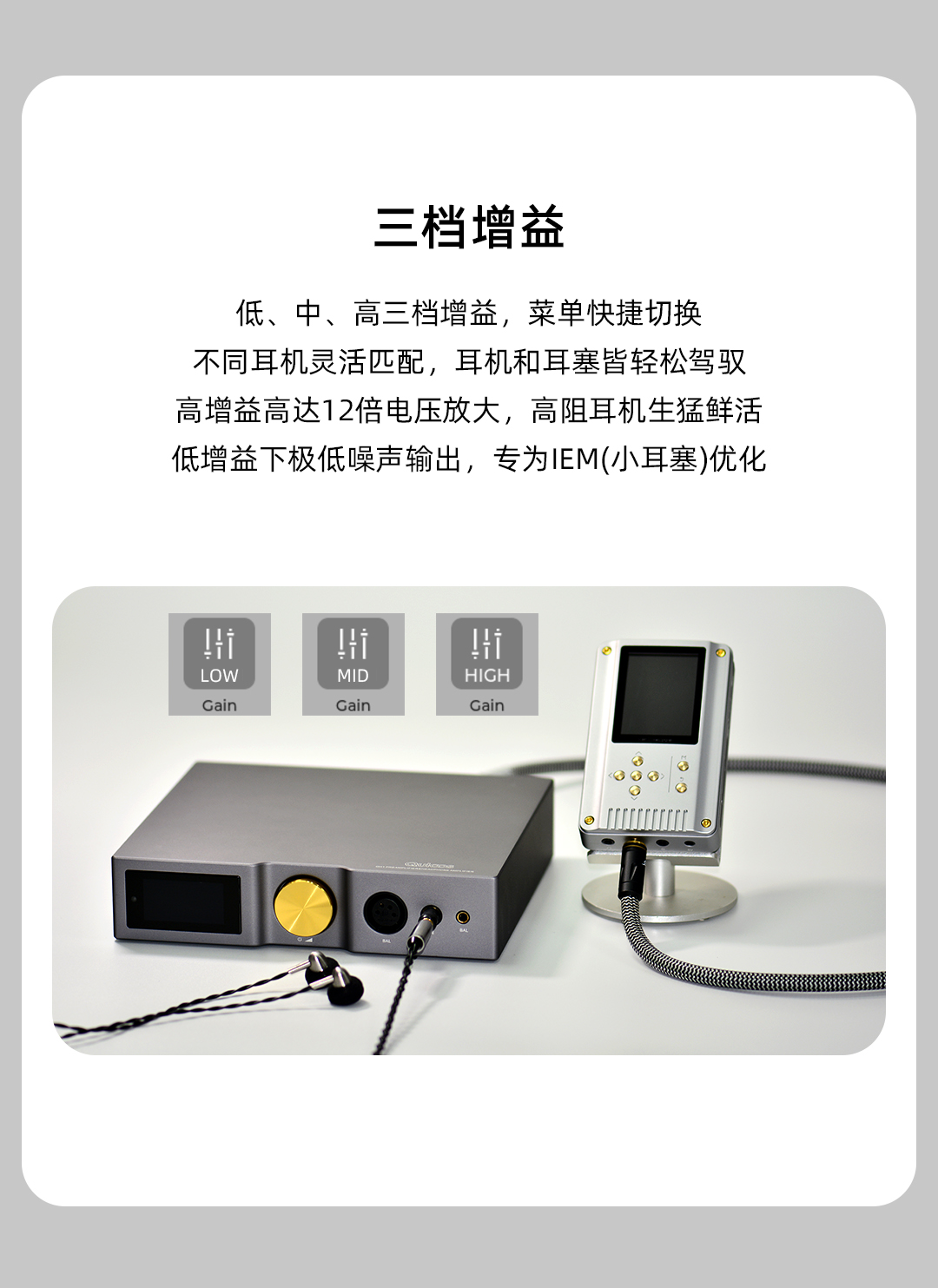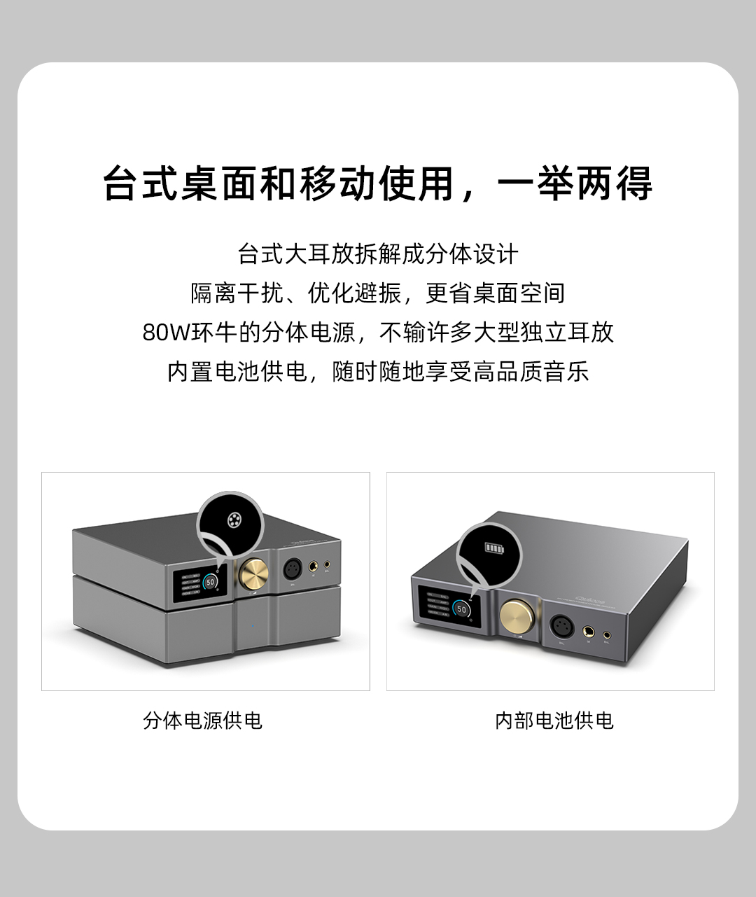 MC01平衡輸出使用兩顆大功率的獨立耳放芯片,4.4輸出高達260mW@32歐,這是比很多旗艦便攜HiFi播放器更高的輸出功率??梢赃m配更多難推的耳機。