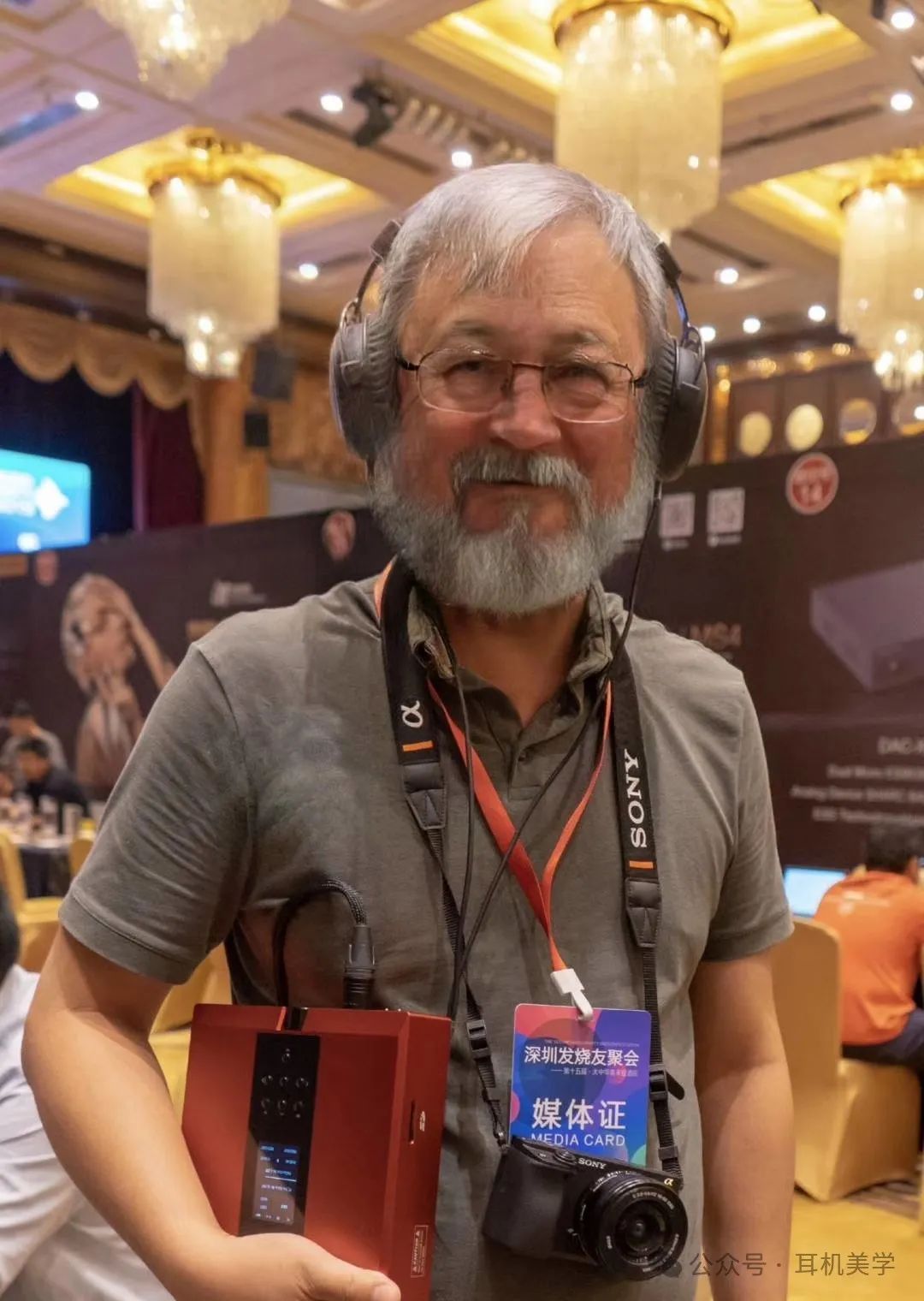 這是一張我拍攝于2019年深圳燒友聚會的照片,當時剛剛有了一款可以通過算法一鍵變老、一鍵性別互換的app,我就“調(diào)皮地”把自己一鍵變老,配文“老燒之選”發(fā)到了朋友圈。沒想到后來好多人都以為真是一個老者玩家,還在燒友圈子里小規(guī)模傳播了一陣子。而當時我懷里兜著的,就是當時即將發(fā)售的乾龍盛QA390。
