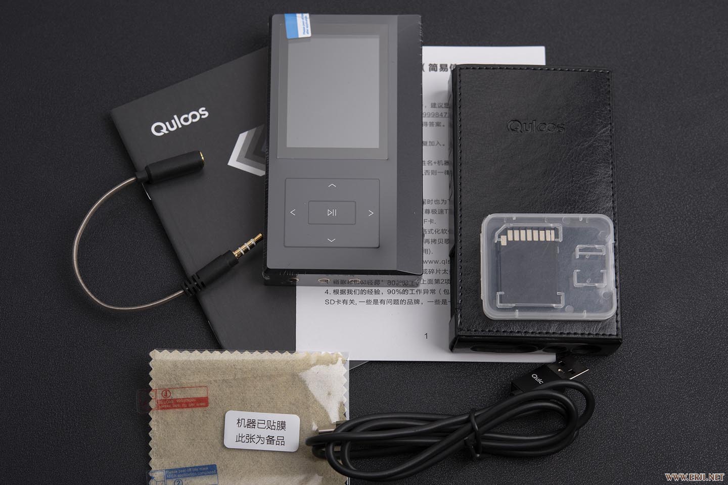 如果是已經(jīng)在線下會展接觸過QA361的用戶可能不知道QA361的配件情況,其實這里除了讀卡器忘了一起拍以外,最重要的是QA361附送了一個3.5mm轉2.5mm的平衡線。雖然乾龍盛的產品常被人吐槽成理工男的產品,但是在配件上還是很能體現(xiàn)出“理工男”的貼心一面。